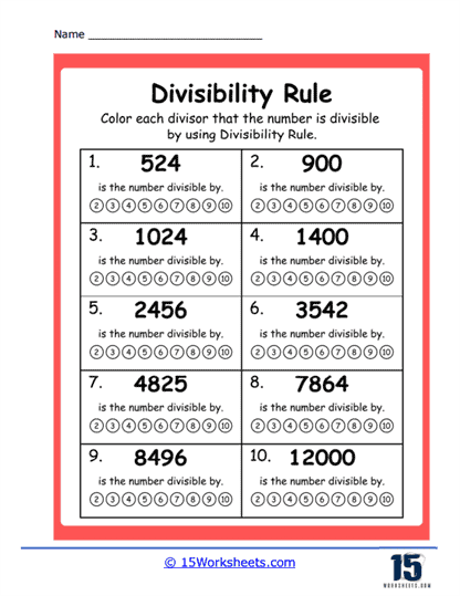 Divisibility rules worksheets typically include a variety of exercises that test students’ understanding of the rules for different numbers. These exercises may involve identifying whether a number is divisible by another number, finding the factors of a given number, or determining the prime factorization of a number. By practicing these exercises, students can improve their problem-solving skills and develop a deeper understanding of divisibility rules.
