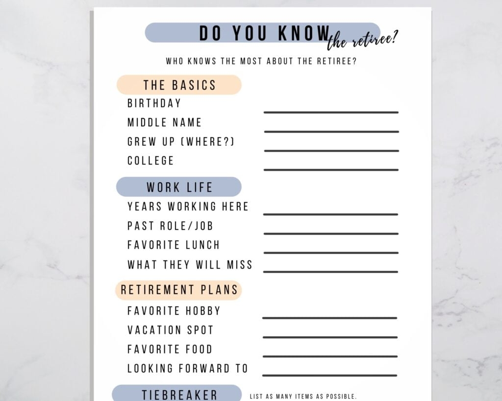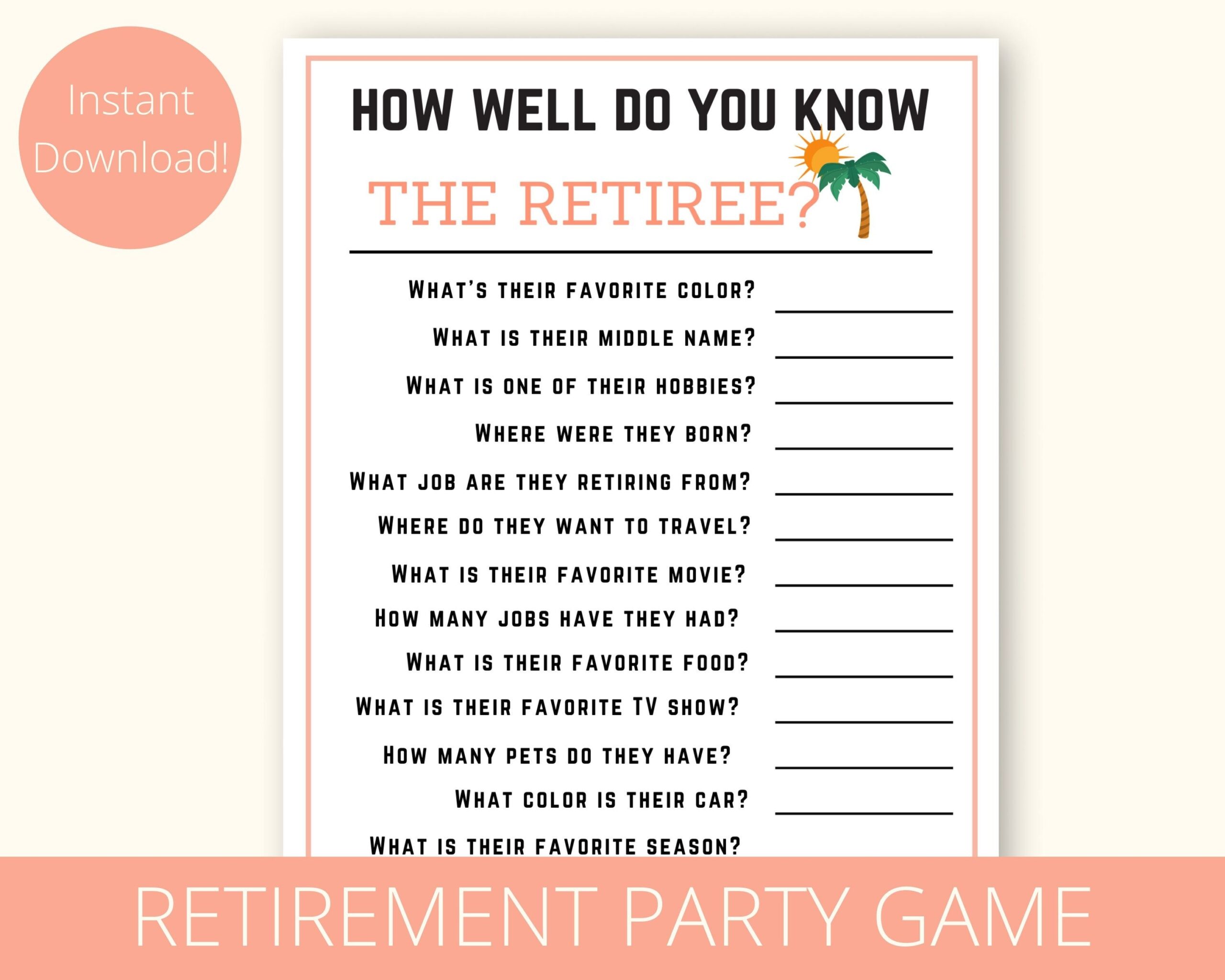 Another great printable retirement game is a trivia quiz. You can create a quiz with questions about the retiree’s career, hobbies, and favorite memories. This game is not only entertaining but also a great way to reminisce and celebrate the retiree’s accomplishments.