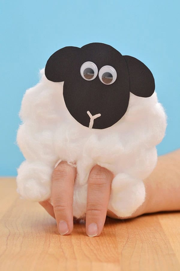 - Glue cotton balls onto the sheep’s body to create a fluffy texture.