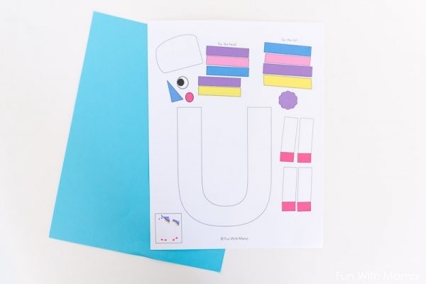 Start by printing out the unicorn letter U template on colored paper or cardstock. Then, carefully cut out the letter U and the unicorn features such as the horn, ears, and mane. Next, have your child color in the unicorn features with markers or crayons to add a pop of color to the craft.