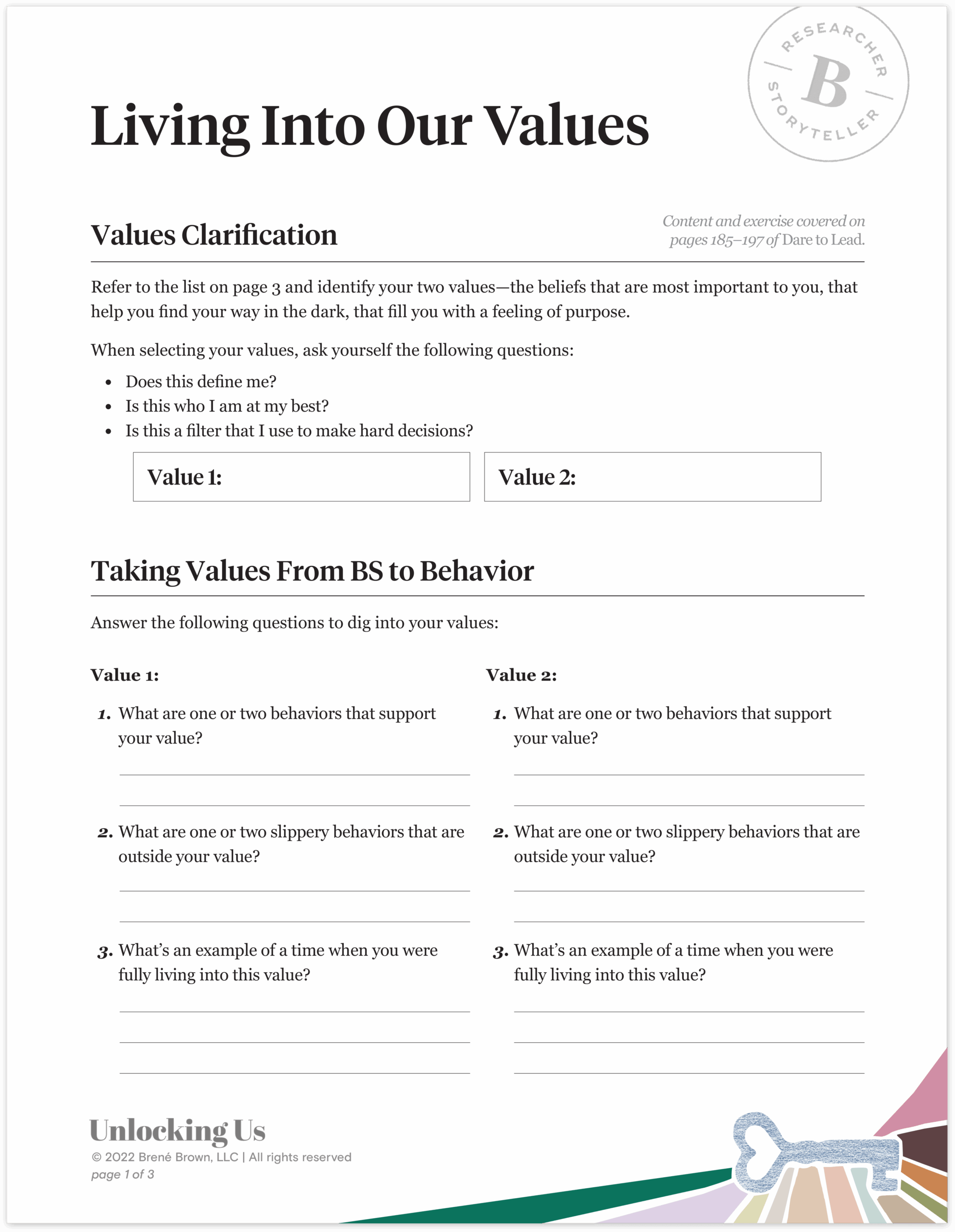 Printable Values Worksheet