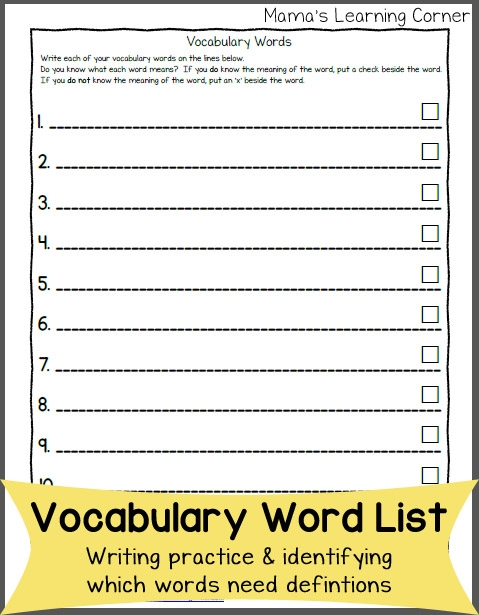 5. Vocabulary Word Lists: Provide students with printable word lists organized by themes or topics. Have them write sentences using the words or create stories incorporating the vocabulary. This exercise encourages creativity and helps students understand how words are used in context.