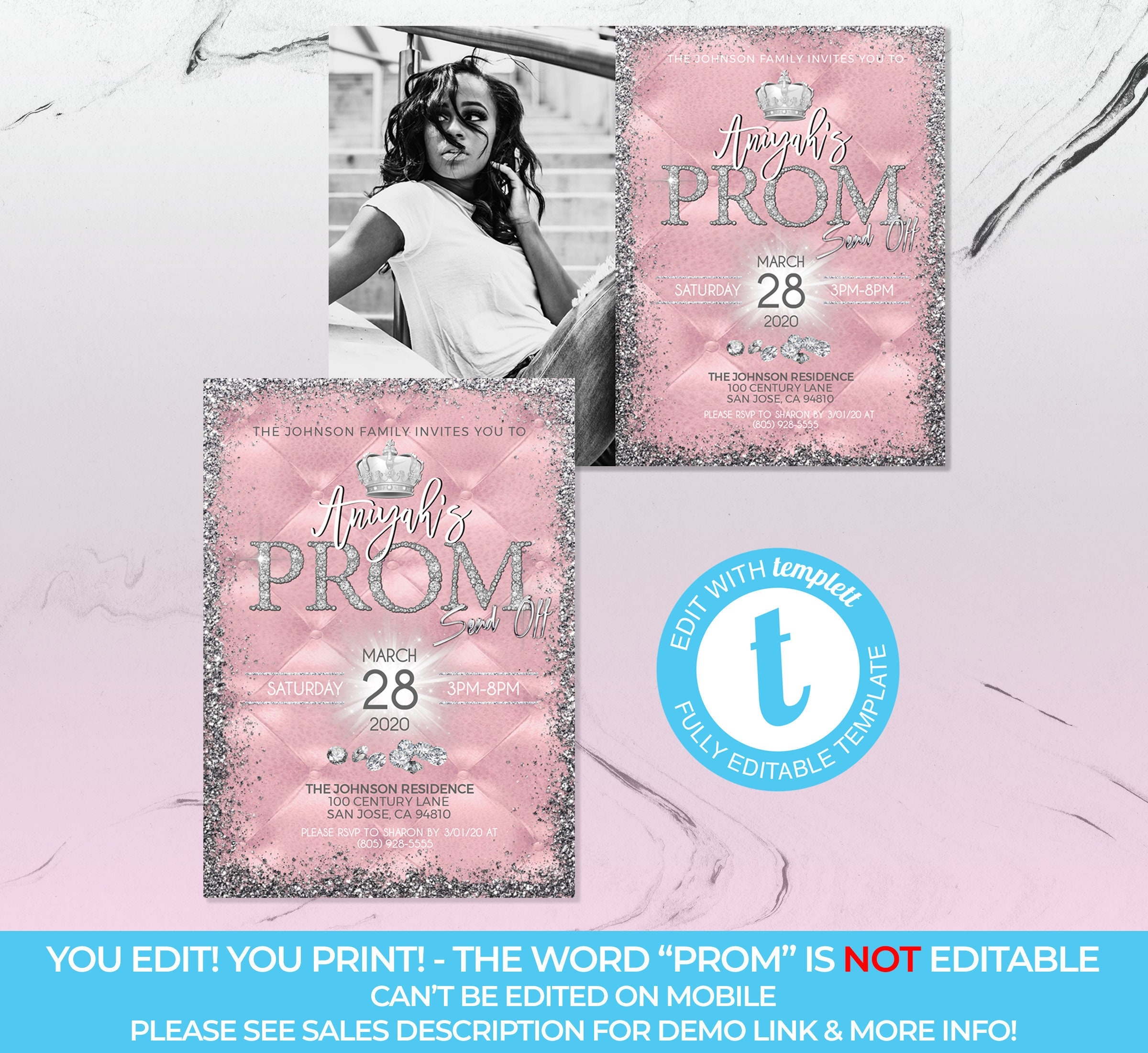 One popular option is a template that features a photo of the prom-goers along with details of the event. This personalized touch adds a special element to the invitation and makes it truly unique. Another idea is to use a template with a sleek and modern design, perfect for a more upscale send-off party.