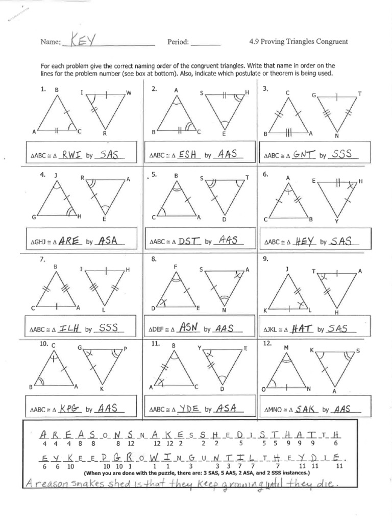 Working through these worksheets can help you practice applying the congruence criteria and develop your problem-solving skills. By carefully analyzing the given information and applying the appropriate criteria, you can determine whether the triangles are congruent and provide a valid proof. This process not only reinforces your understanding of congruence but also improves your ability to think critically and logically.