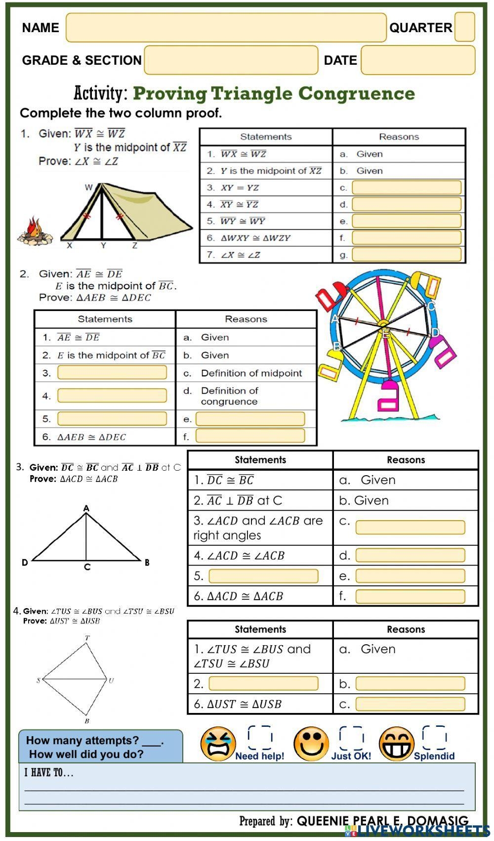 Proving Triangles Congruent Worksheet