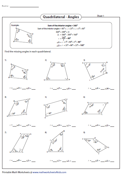 Quadrilateral worksheets are designed to cover a range of topics related to these shapes. They can include identifying different types of quadrilaterals, calculating perimeter and area, finding missing angles, and solving word problems involving quadrilaterals. These worksheets can be tailored to different grade levels, from elementary to high school, making them versatile tools for educators.