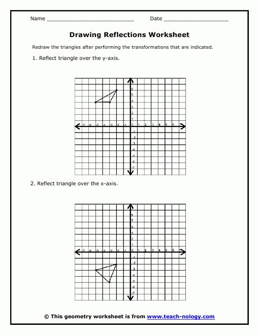 Another type of problem found on reflection math worksheets is to identify the line of reflection for a given pair of shapes. Students must analyze the positions of the shapes and determine the line across which one shape has been reflected to create the other. This type of problem helps students develop their ability to recognize symmetry and understand how shapes can be transformed through reflection.