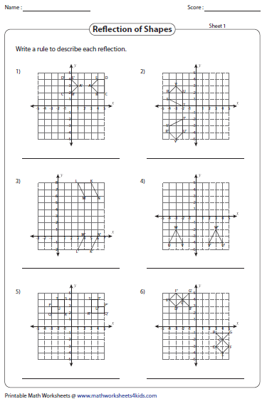 Reflection math worksheets typically include a variety of problems that require students to reflect shapes across different lines of symmetry. These problems can range from simple reflections of basic shapes to more complex reflections involving multiple shapes and lines. By working through these worksheets, students can develop their spatial reasoning skills and gain a better understanding of how reflections work in geometry.