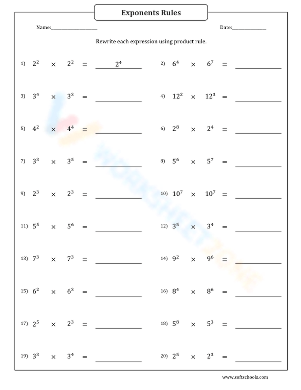 By practicing with a rules of exponents worksheet, students can improve their understanding of how exponents work and gain confidence in applying these rules to different types of expressions. This practice is crucial for success in more advanced math courses and standardized tests.