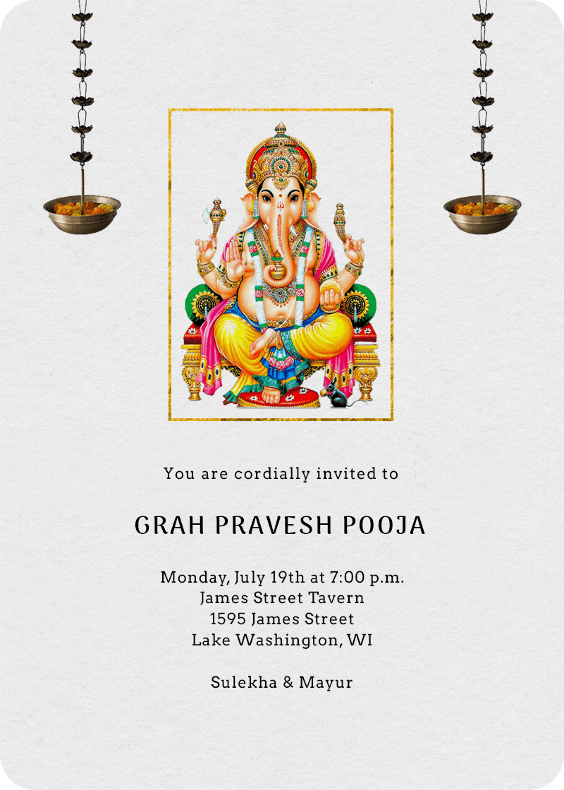 Remember to include a request for blessings and presence in your invitation, as it is customary for guests to bring offerings and participate in the rituals during the pooja. You can also customize the template with your family name or a personal message to make it unique to your event. With our free PDF template, you can easily create professional-looking invitations without any hassle.