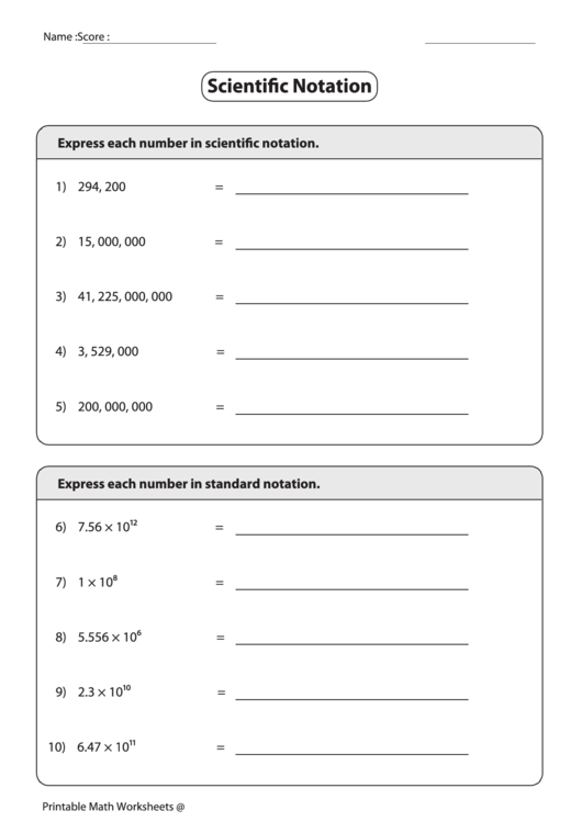 Scientific Notation Worksheet PDF