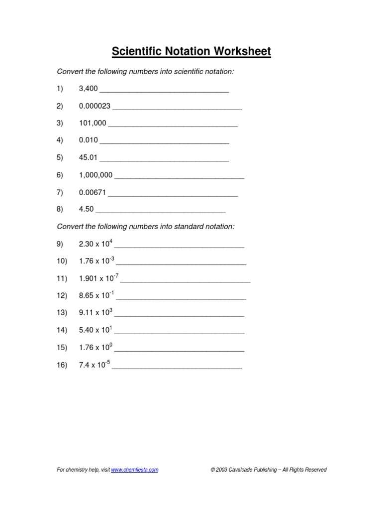 A scientific notation worksheet PDF typically includes a mix of problems involving converting numbers to and from scientific notation, performing calculations with numbers in scientific notation, and applying scientific notation to real-world scenarios. These worksheets can be used in the classroom as homework assignments, in-class activities, or study guides for tests and quizzes.