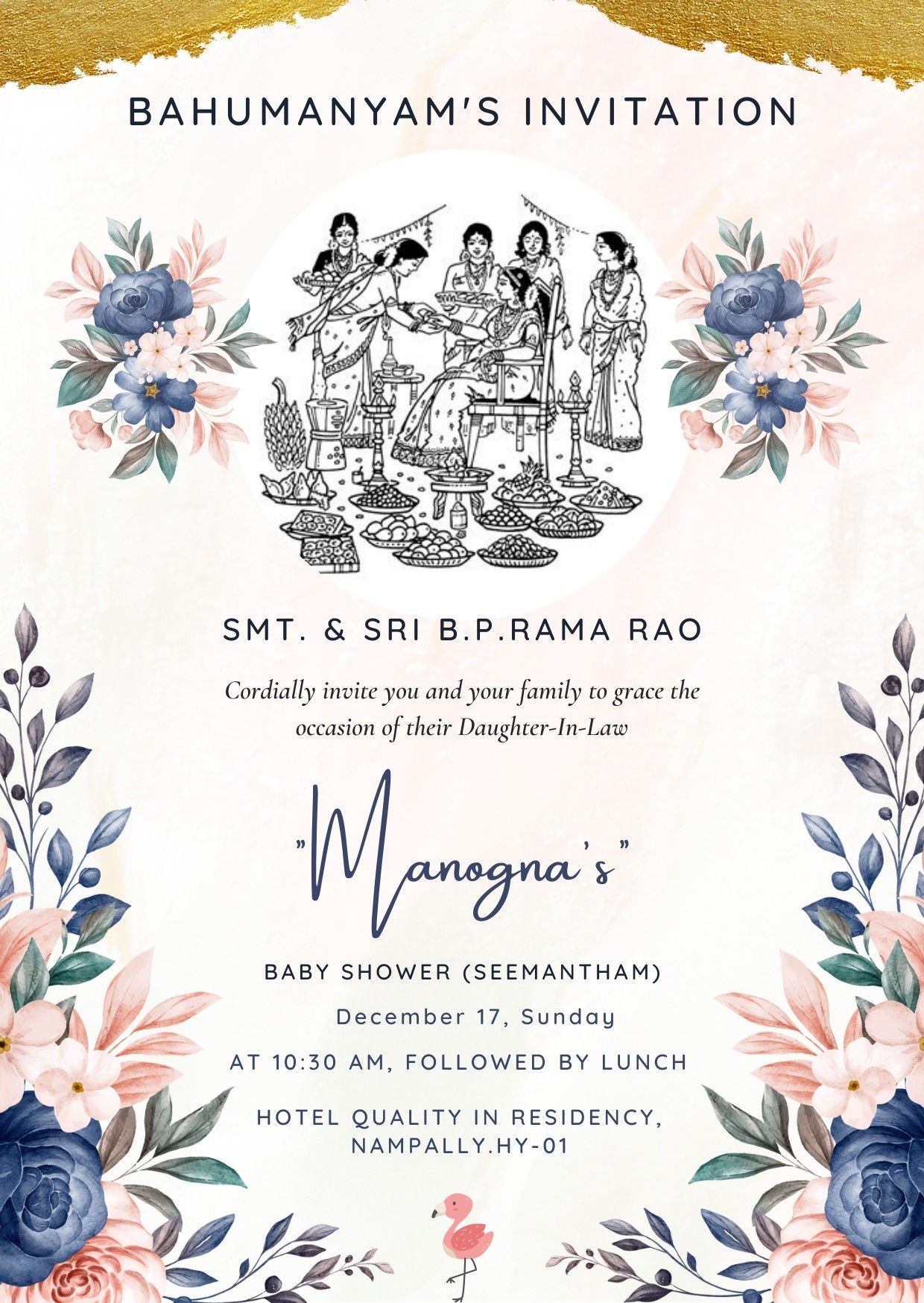 Planning a seemantham ceremony for a loved one is a special occasion that requires attention to detail. One of the key elements of this celebration is the invitation. A well-designed seemantham invitation sets the tone for the event and gets guests excited to attend.