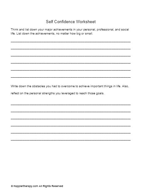 Worksheets are a great tool for self-improvement as they provide a structured way to reflect on our thoughts, feelings, and behaviors. By completing self-confidence worksheets, we can identify areas where we may be lacking confidence and work on improving them. These worksheets can help us set goals, track our progress, and develop a positive mindset.