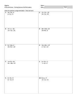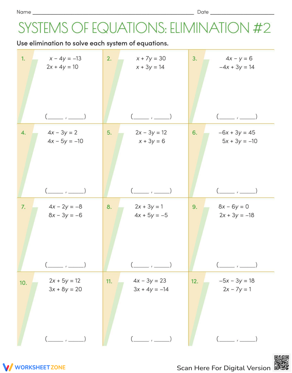 Elimination worksheets are a great way for students to practice this method and improve their understanding of how to solve systems of equations. These worksheets typically present students with a series of equations that they must manipulate using the elimination method to find the solution. They are a valuable tool for reinforcing the concepts learned in class and helping students develop their problem-solving skills.
