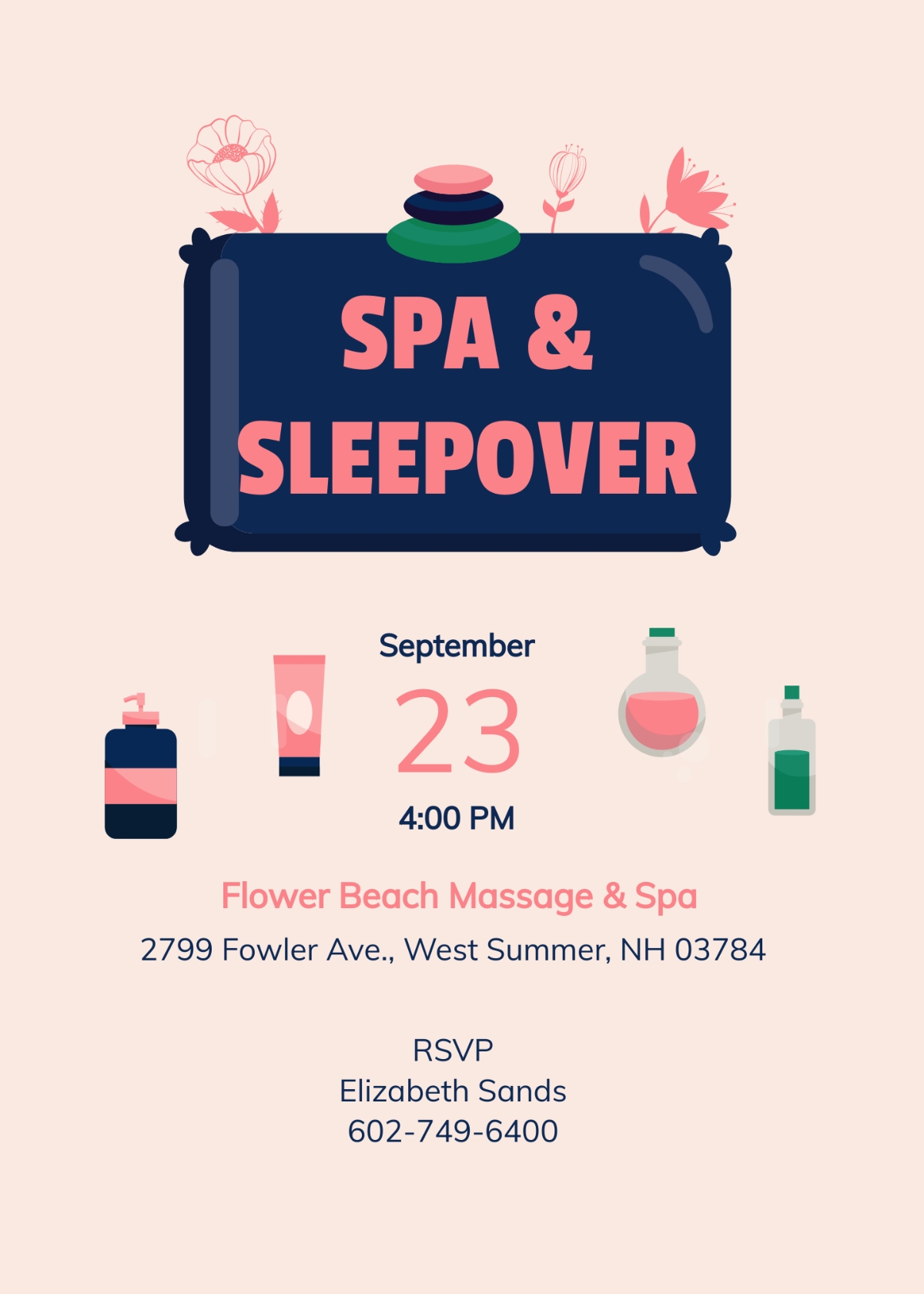 So why wait? Start planning your spa day today with our spa invitation template. Treat yourself and your loved ones to a day of pampering, rejuvenation, and relaxation. Your guests will appreciate the thoughtful invitation and will be eagerly anticipating the luxurious experience that awaits them. Download our template now and get ready to unwind in style!