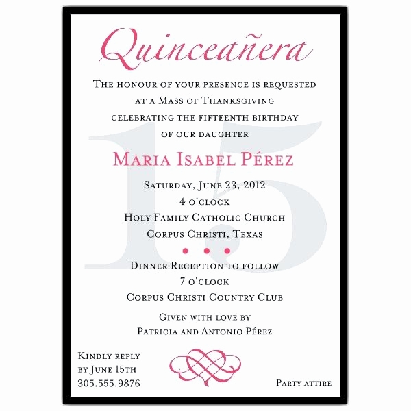 Quinceanera Invitation Wording Spanish Elegant Quinceanera Invitation