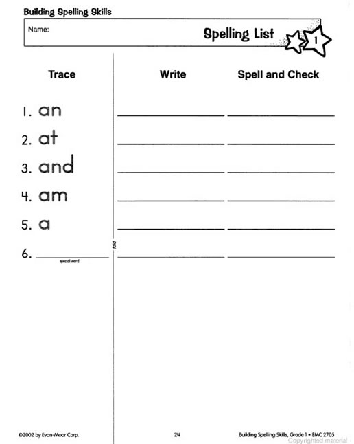 Spelling Worksheets Grade 1