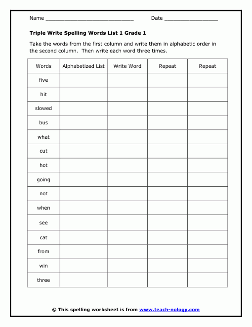 Download and Print spelling worksheets grade 1 Listed below