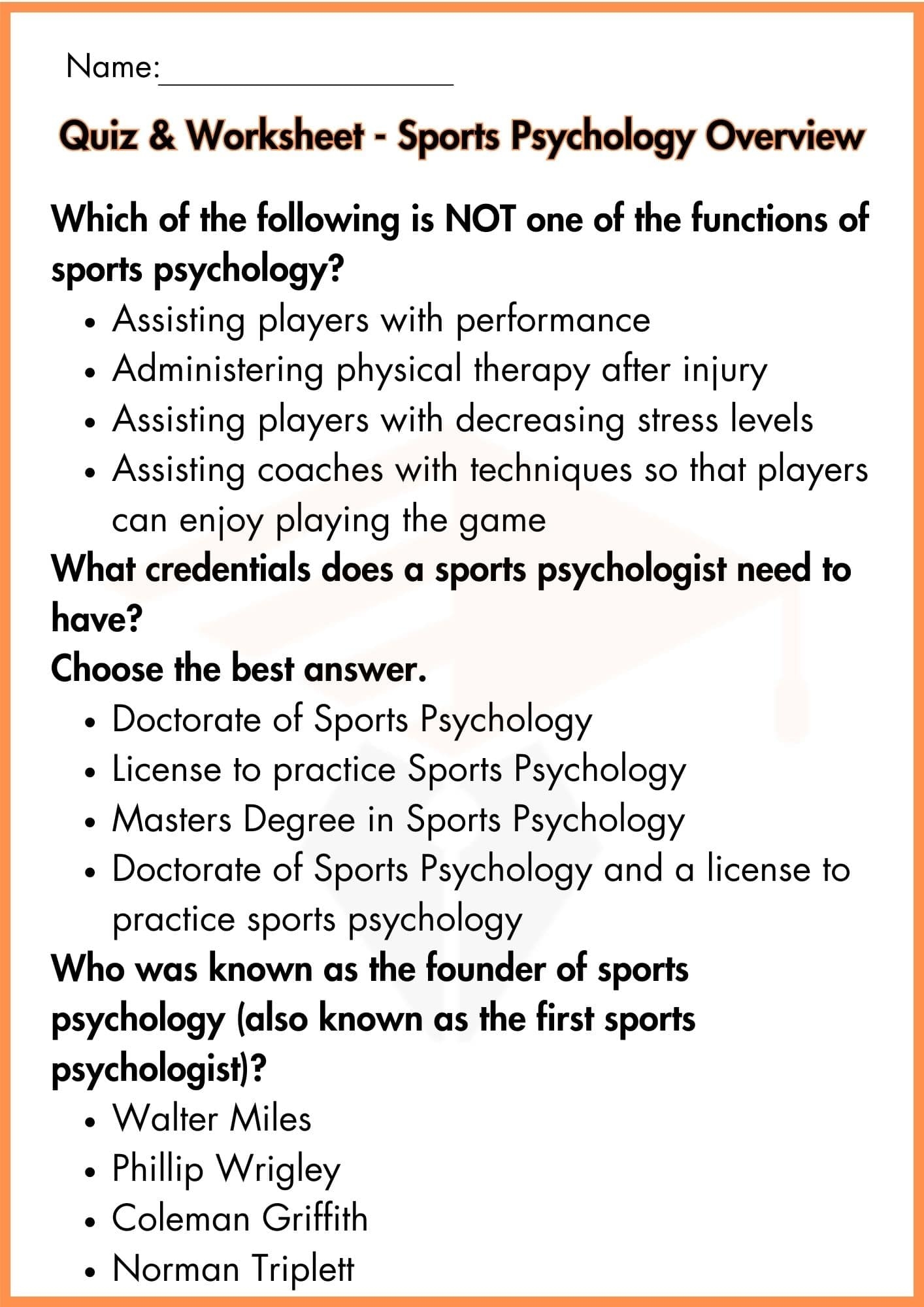 Benefits of Sport Psychology Worksheets