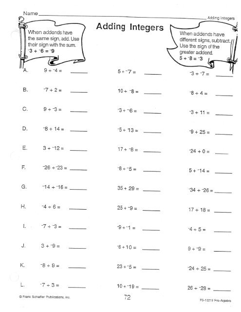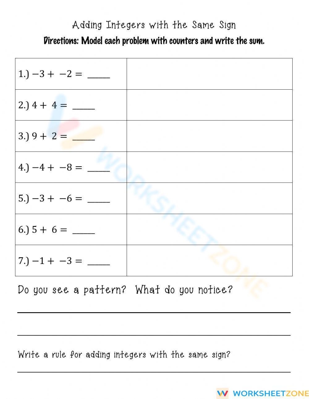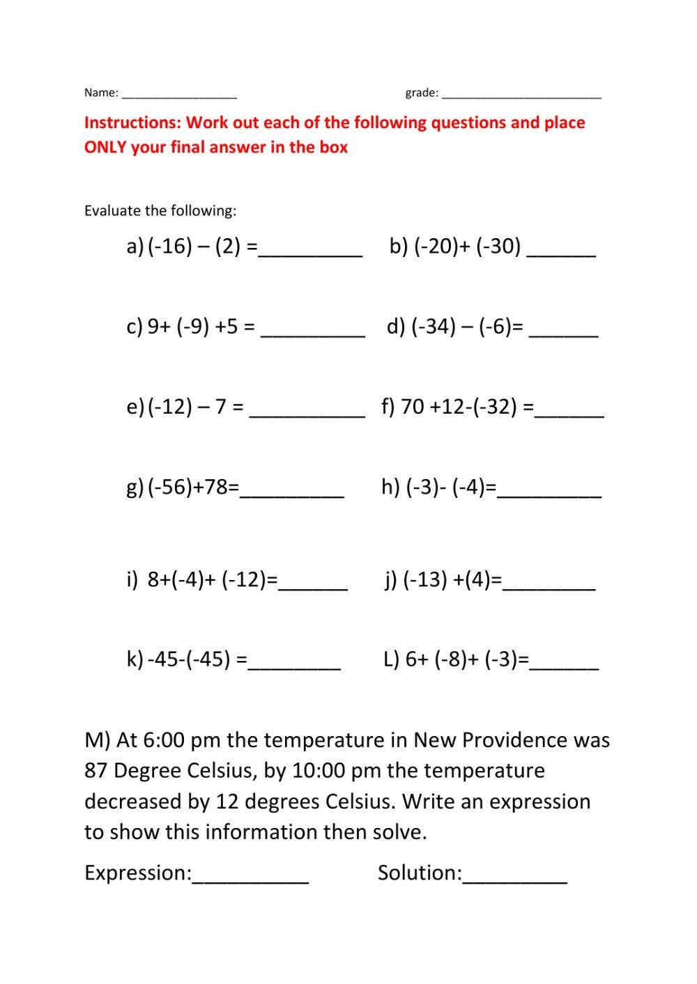 One common type of problem found on these worksheets is adding integers with different signs. For example, students may be asked to calculate -3 + 5 or -8 + (-4). By working through these problems, students can learn how to properly add integers with both positive and negative values.