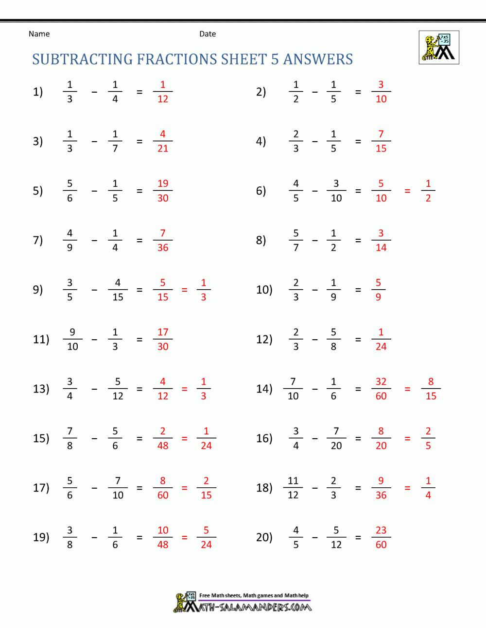 Subtracting fractions can be a challenging concept for students to grasp. One way to help them understand this concept better is by using subtracting fractions worksheets. These worksheets provide students with practice problems and examples to help them master the skill of subtracting fractions.