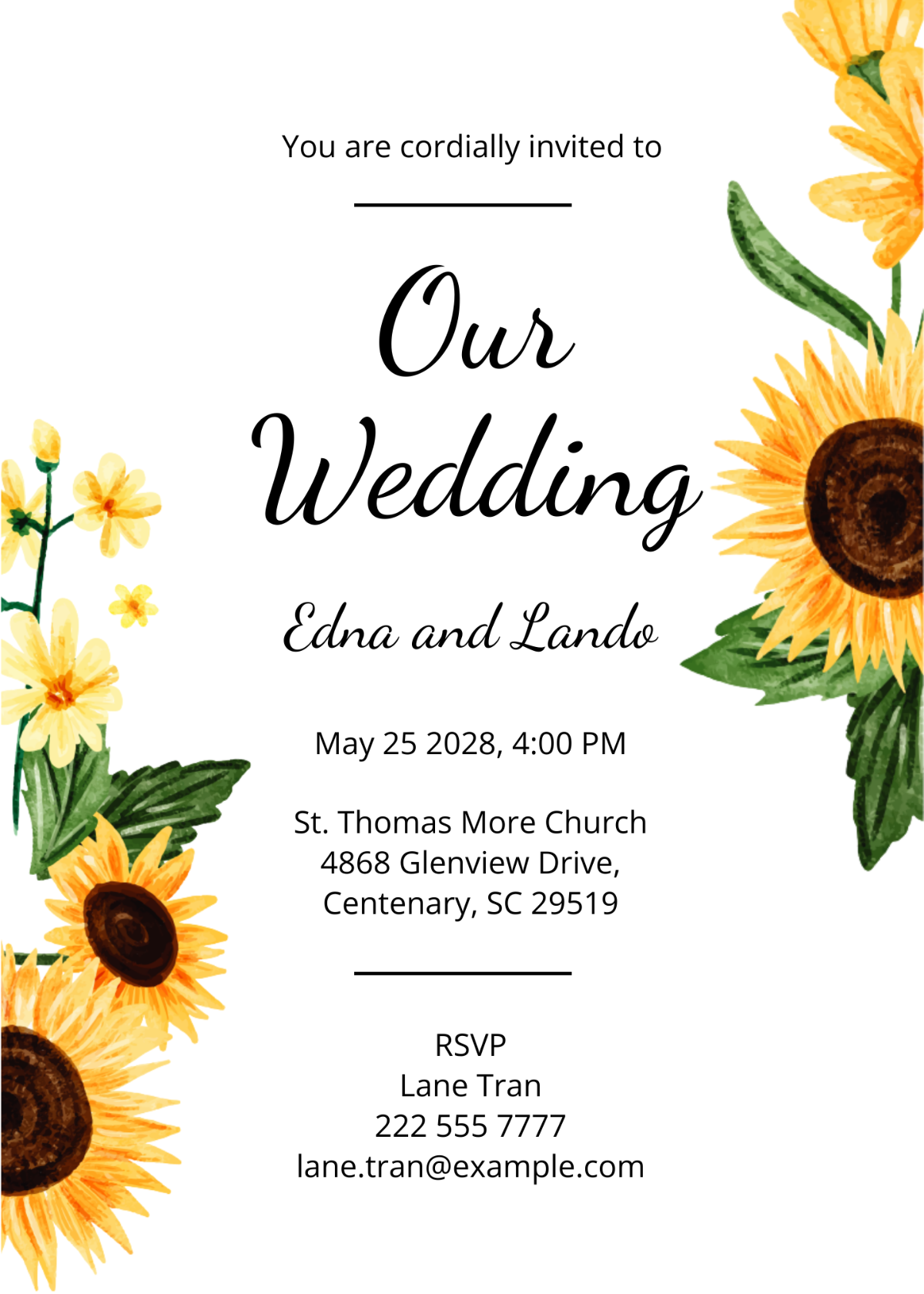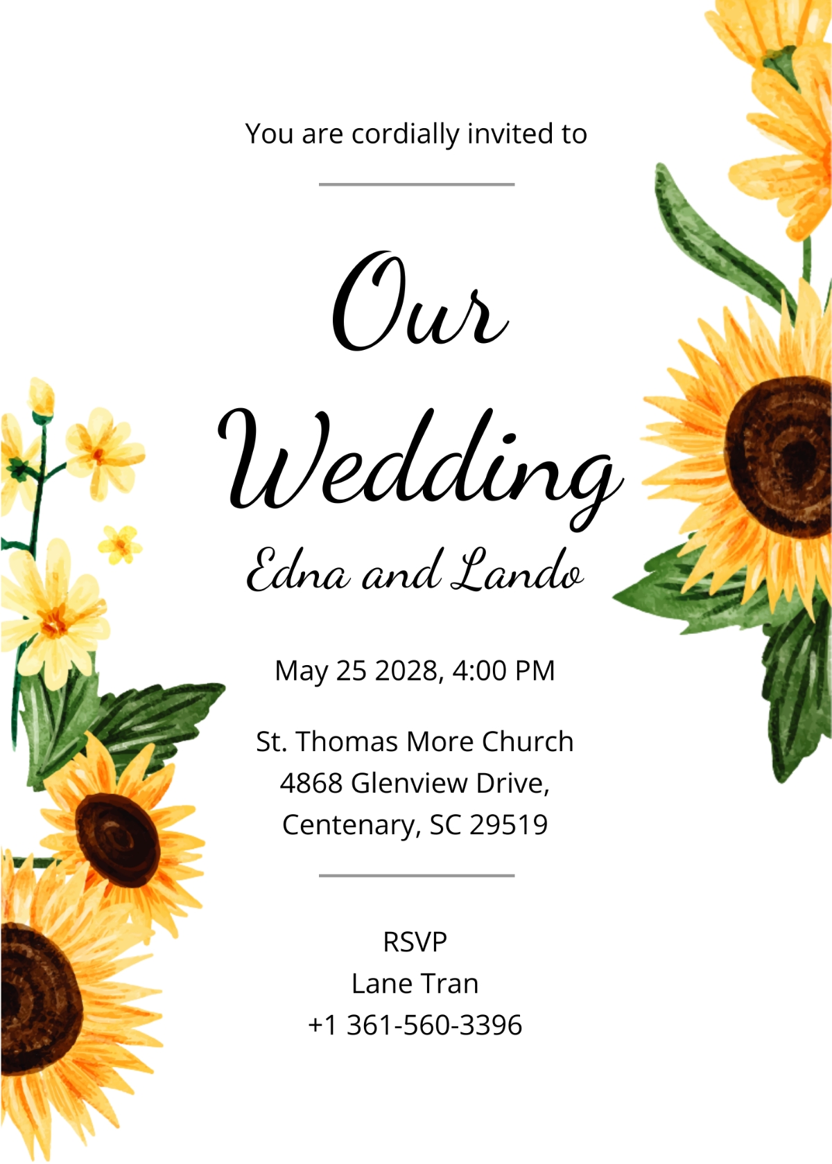 When choosing a sunflower invitation template, look for one that is easy to customize and print. Many templates are available for free online and can be downloaded and edited using programs like Microsoft Word or Adobe Photoshop. You can also find templates that are designed specifically for printing at home or at a local print shop, making it easy to create professional-looking invitations without breaking the bank.