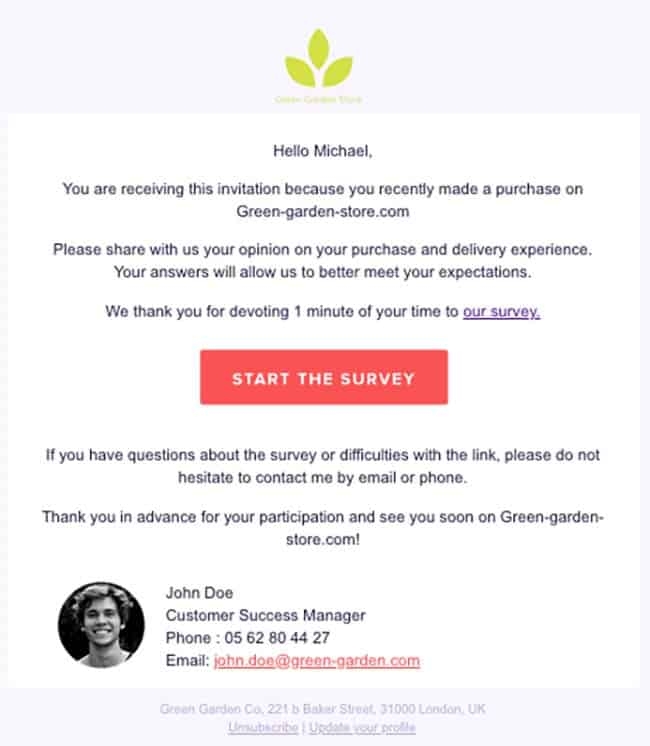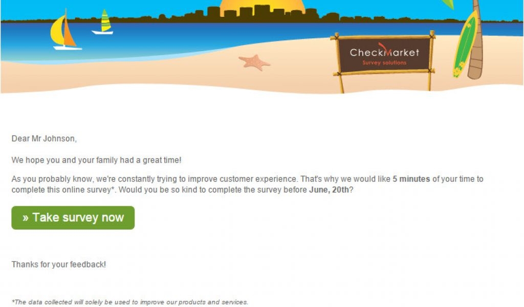 2. Clear Call to Action: Clearly communicate the purpose of the survey and what you hope to achieve. Include a prominent call-to-action button that directs recipients to the survey link. Make it easy for them to access and complete the survey.