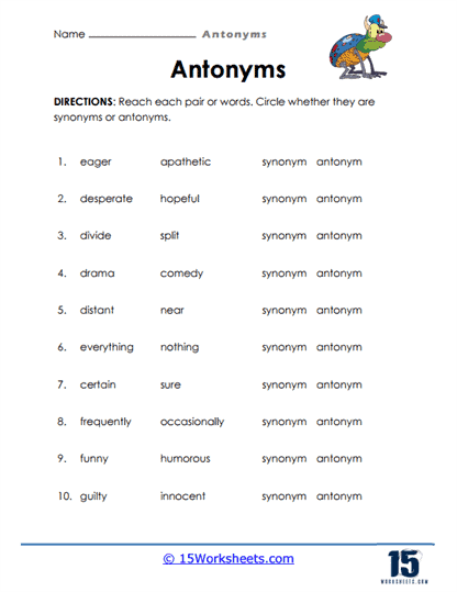 Benefits of Synonym and Antonym Worksheets
