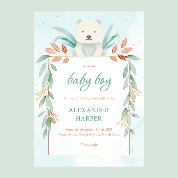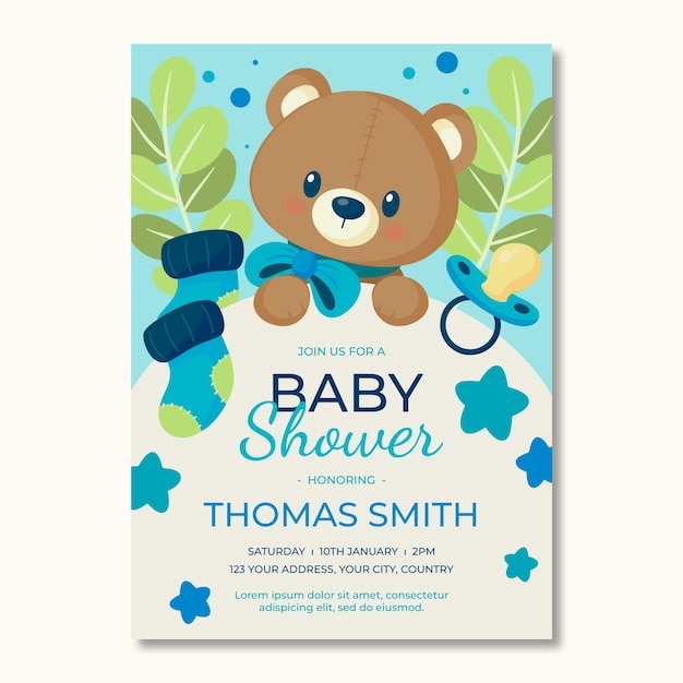 Free Vector Teddy Bear Baby Shower Invitation Template