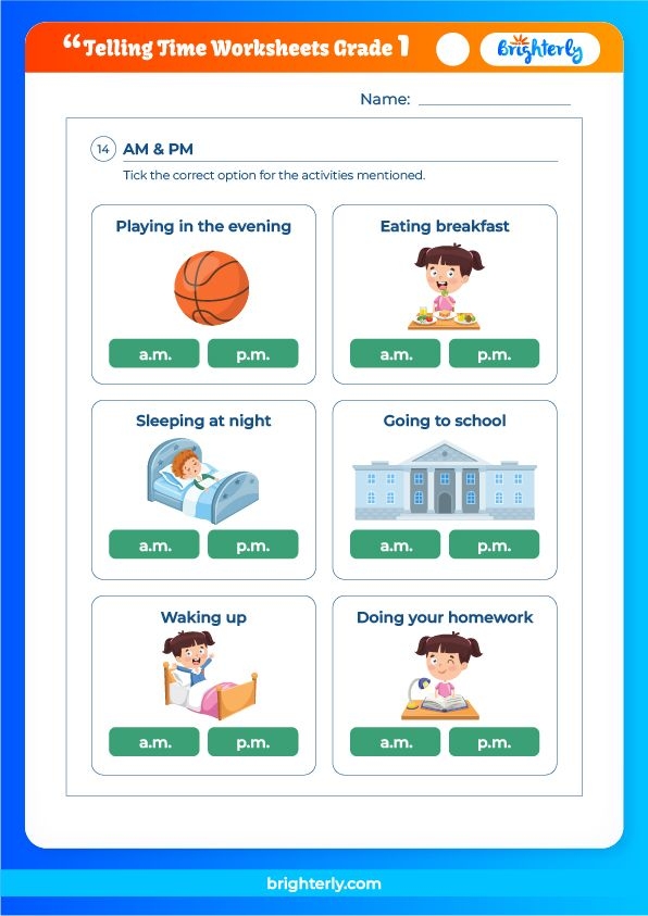 One common activity in time worksheets for grade 1 is matching analog clocks to digital clocks. Students are given a set of analog clock faces with different times and a set of digital clocks with corresponding times. They must match the analog clocks to the correct digital clocks to reinforce the connection between the two types of time representations.