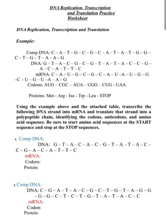 Transcription and translation are essential processes in genetics that help in the synthesis of proteins. A transcription translation worksheet is a valuable tool that helps students understand these processes better. By completing such worksheets, students can practice transcribing DNA sequences into RNA and translating RNA sequences into amino acids, which are building blocks of proteins.