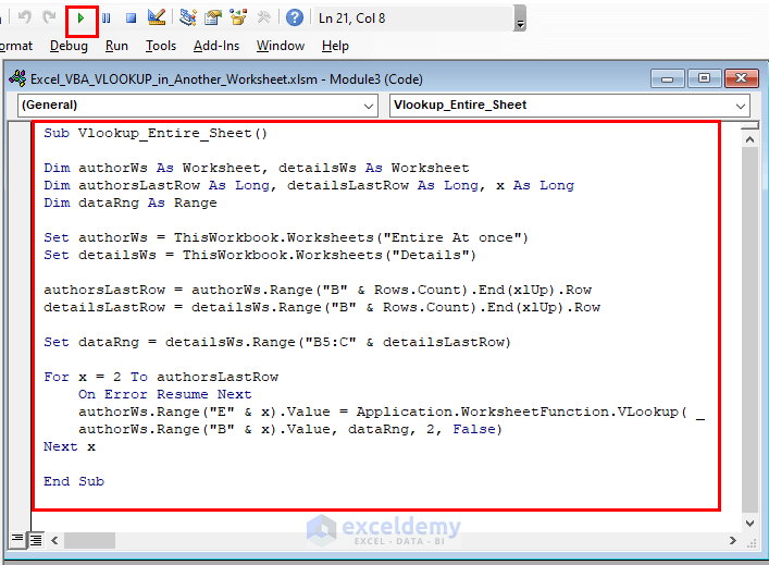 It is important to note that when performing a VLOOKUP in another worksheet, you may encounter errors if the range specified in the formula is incorrect or if the data being searched for is not found. To avoid these errors, double check the range and ensure that the data you are searching for actually exists in the specified range.