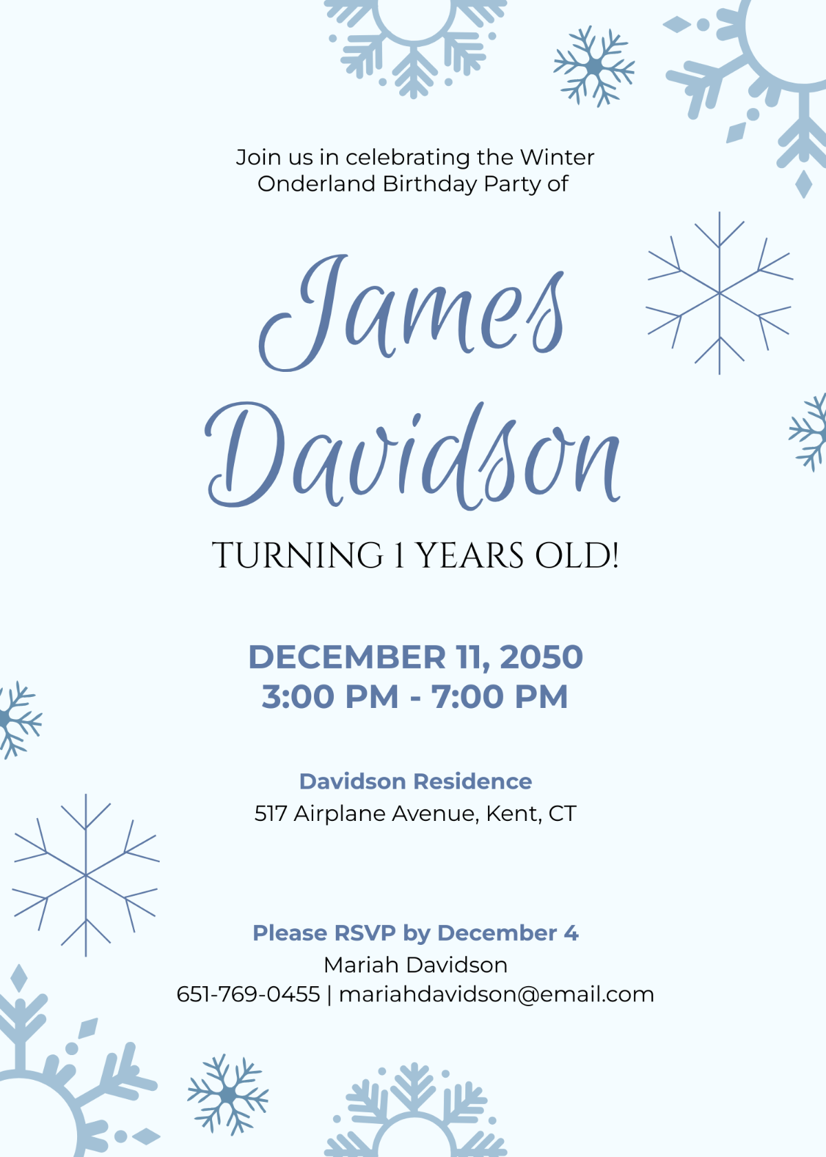 Winter is a time of year that brings people together, and what better way to celebrate than with a winter-themed party or event? Our Winter Onederland invitation template is the perfect way to set the tone for your gathering and get everyone excited for the festivities ahead. So don’t miss out on this opportunity to make your event truly special with our free and customizable template. Download it now and let the winter fun begin!
