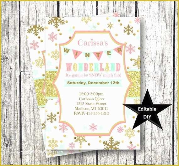 EDITABLE Winter Wonderland Birthday Invitation Winter Etsy Winter