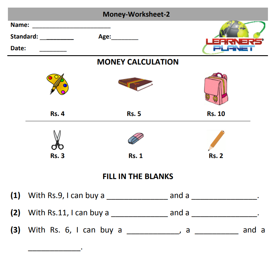 By introducing worksheets on money to class 1 students, teachers can engage them in hands-on activities that make learning about currency enjoyable and practical. These worksheets can include exercises like matching coins to their values, counting money, and solving simple money word problems.